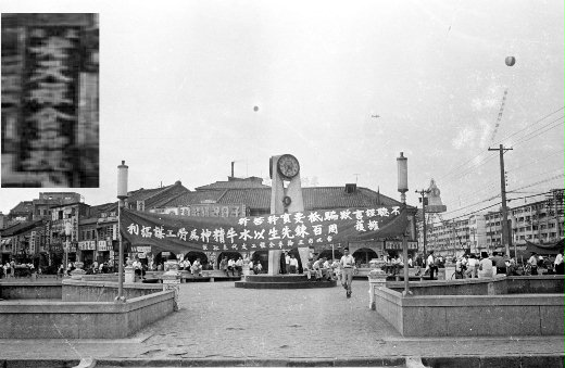 下圖右側是中華商場,左側可看到「上海老天祿食品號」的招牌(左上角為放大圖)。